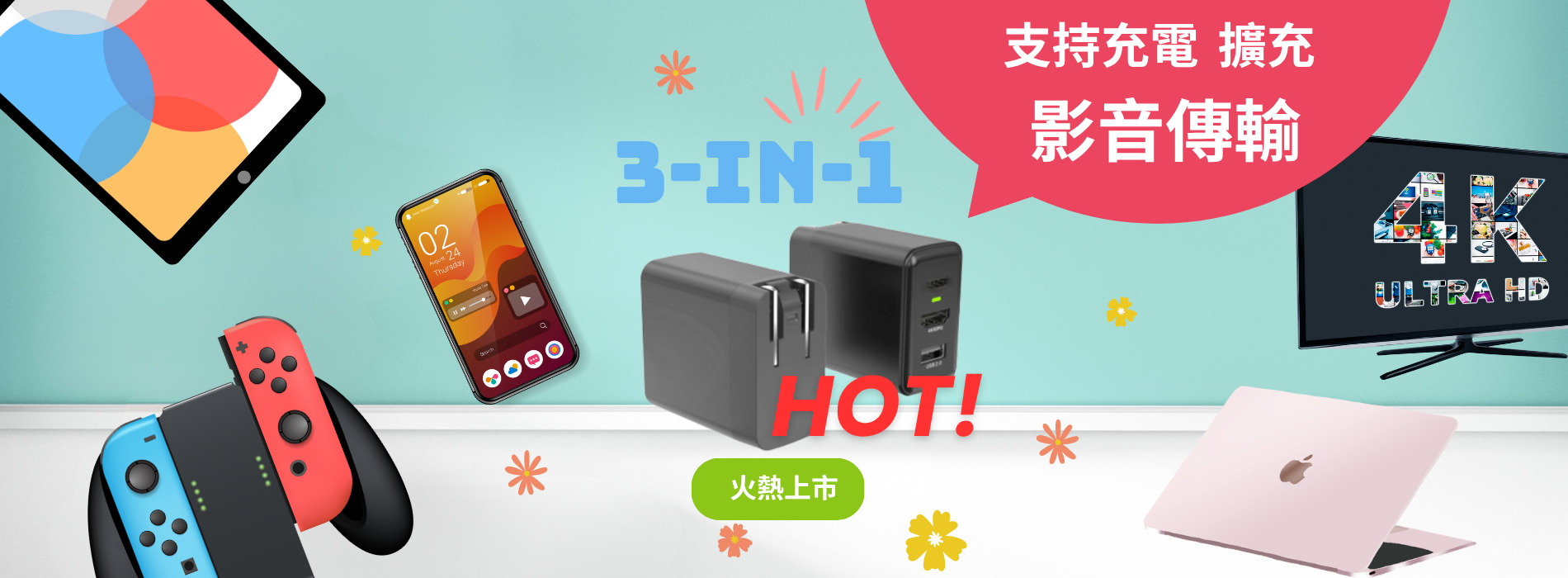 新品量產 65W 氮化鎵4K影像轉換充電器 快充版